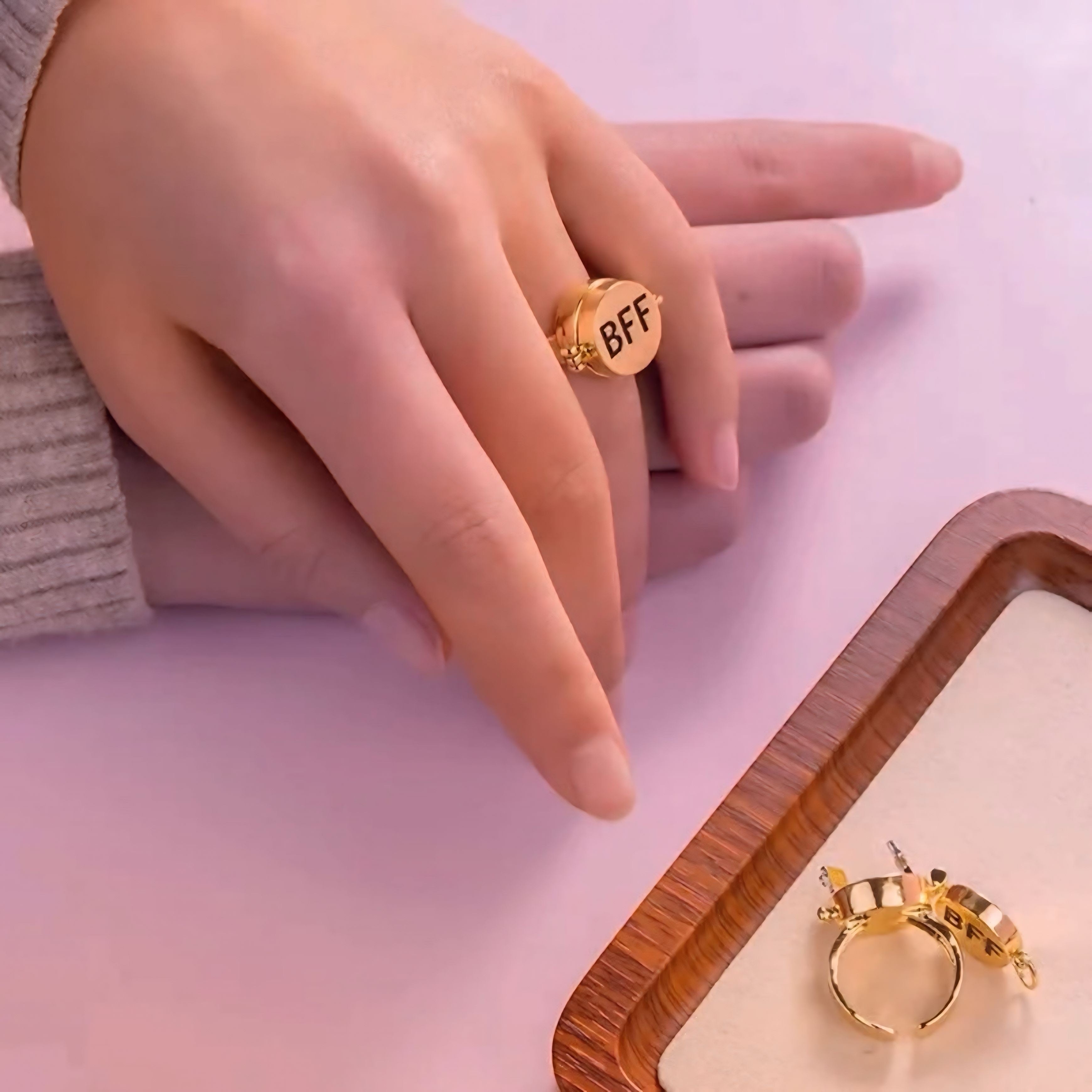 "This ring is adorable! I surprised my bestie with it and she couldn’t stop smiling. It’s the perfect way to show our friendship, and the quality is amazing for the price."